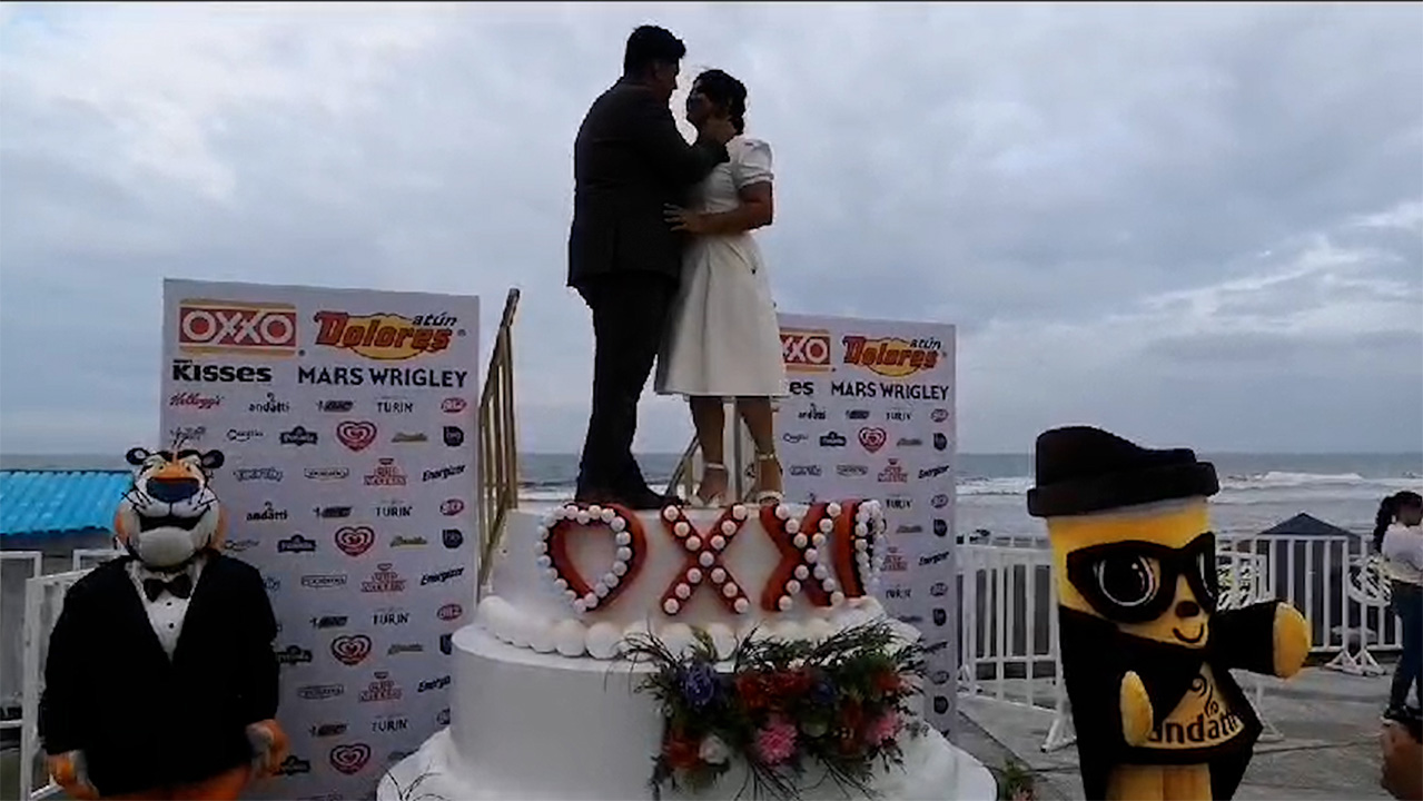 Ana Sarmiento y Misael Rubio se convirtieron este 14 de febrero en la segunda pareja en celebrar su boda en una tienda Oxxo, tras ganar un concurso de selección contando su historia de amor de la manera más creativa y divertida en un vídeo. -