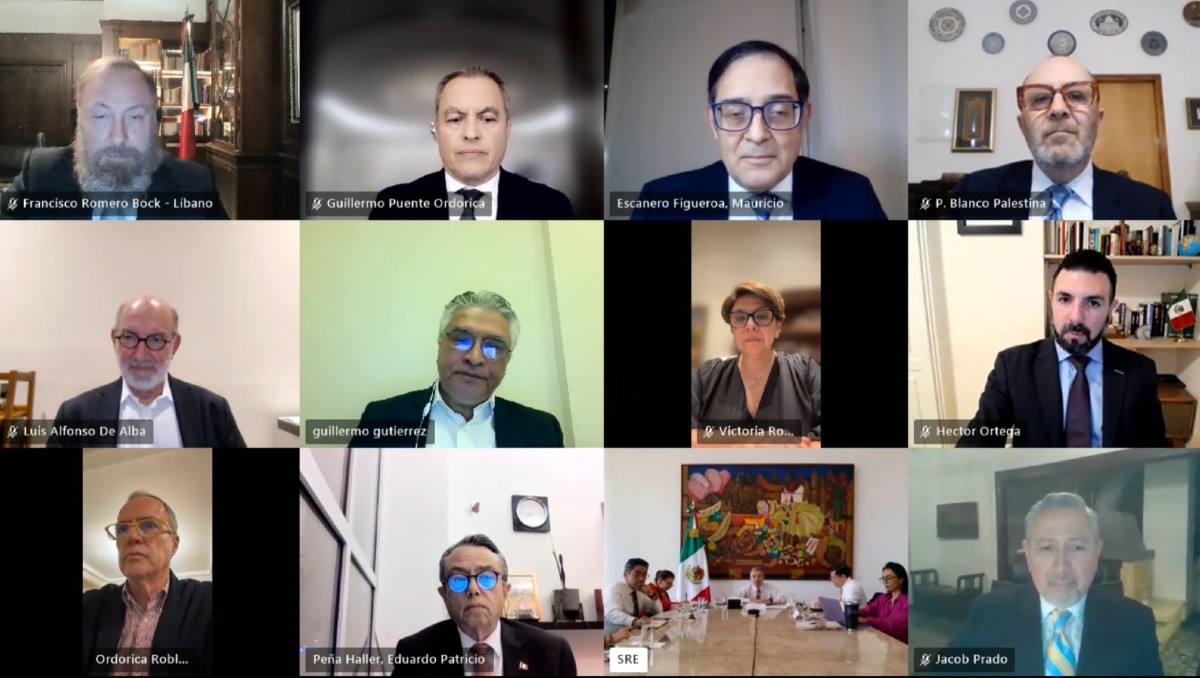 El canciller Juan Ramón de la Fuente sostuvo una reunión virtual con los embajadores de México en la región. -