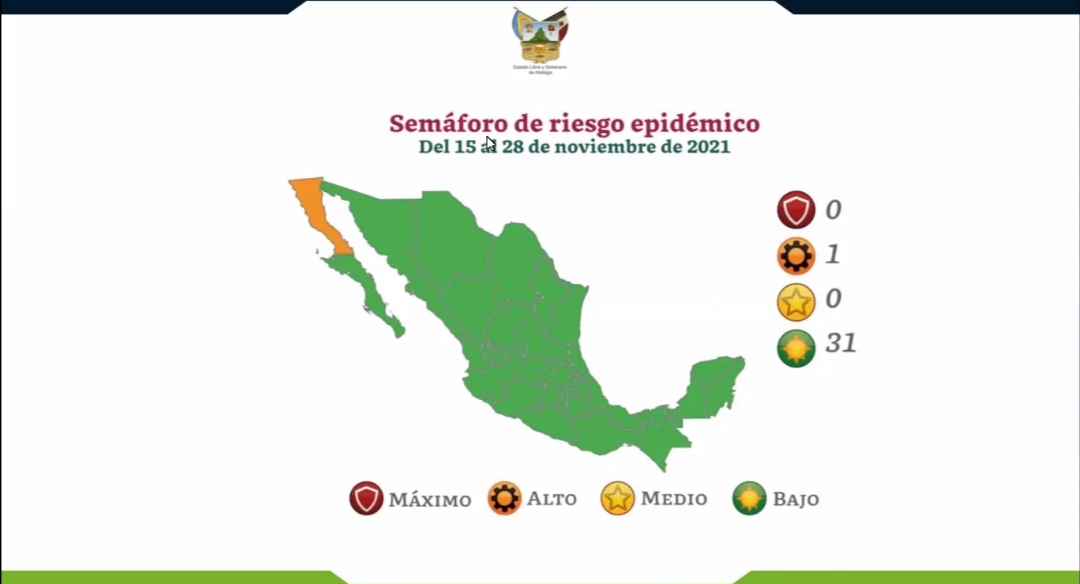 Del 15 al 28 de noviembre estará vigente esta coloración de riesgo epidemiológico en la entidad; se reportan 62 mil 375 casos positivos acumulados para el corte de este viernes -