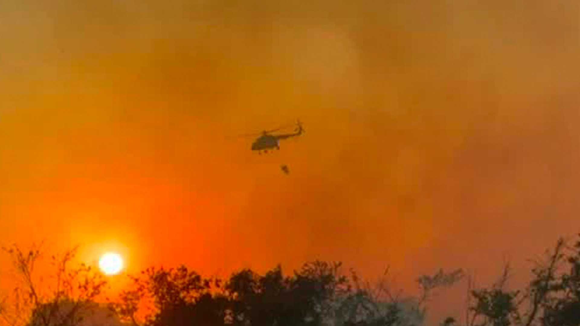 El helicóptero realizó siete descargas de 2 mil litros, sumando un total de 14 mil litros.