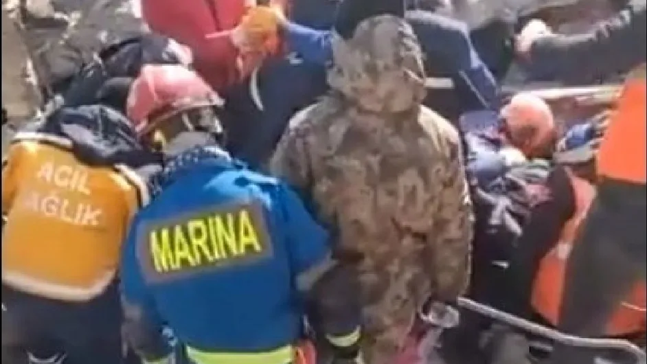 El secretario de Relaciones Exteriores, Marcelo Ebrard, publicó dos videos del momento en que elementos de la Secretaría de la Marina lograron rescatar a una niña de ocho años, que había quedado atrapada bajo los escombros de un inmueble en Turquía. -