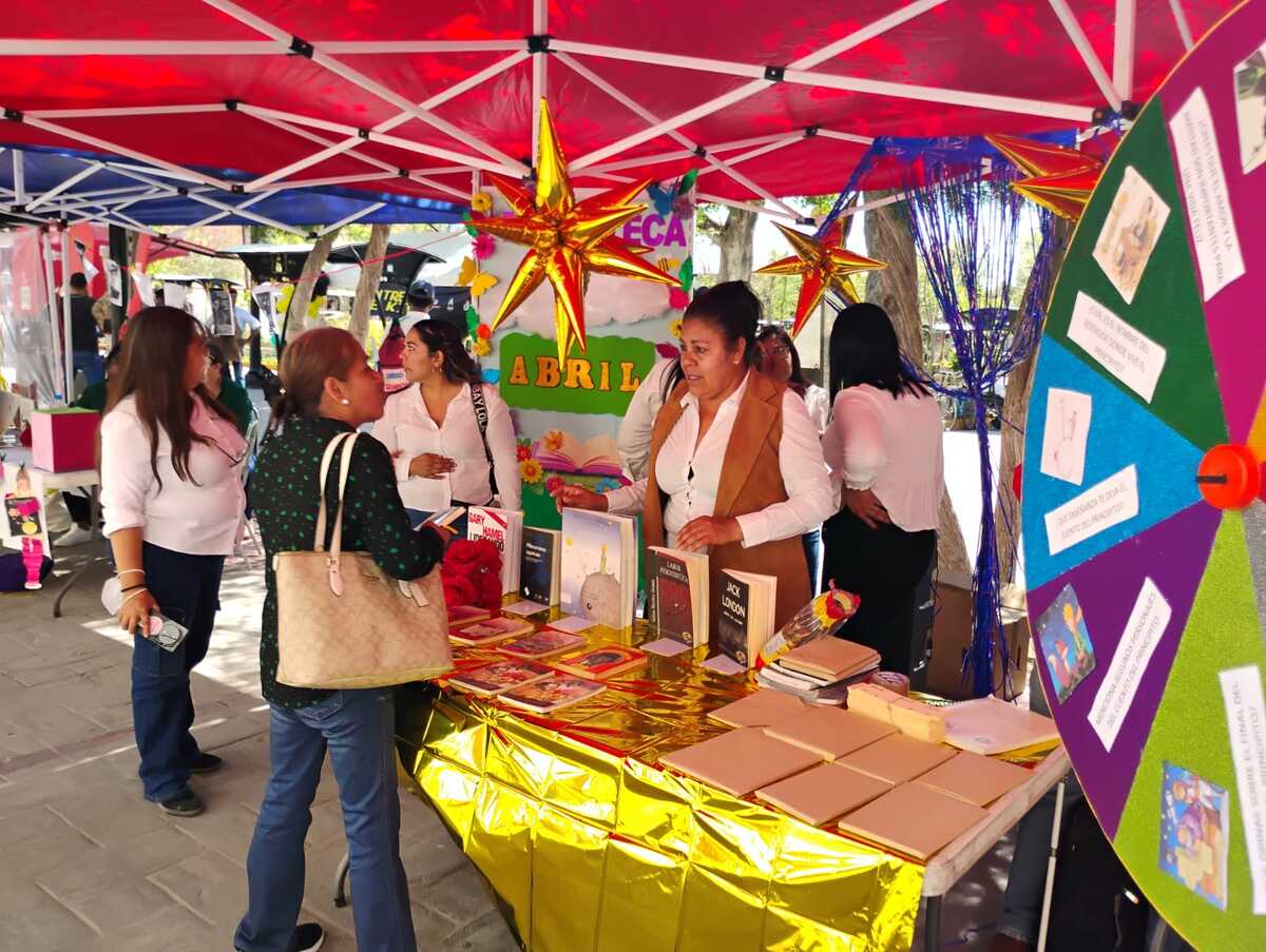 El equipo de Bibliotecas Municipales en Lerdo instaló un stand para ofrecer la lectura en braille de El Principito. -