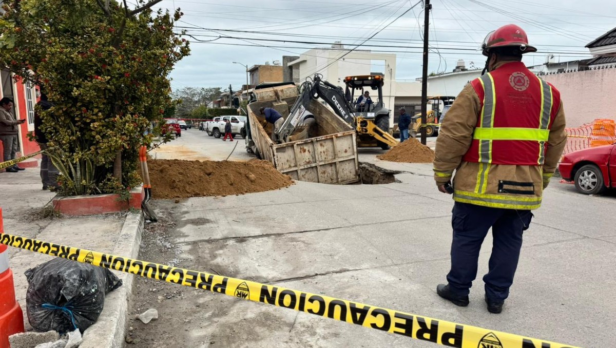 Comapa Sur realiza trabajos de atención a socavón en vialidad de Ciudad Madero