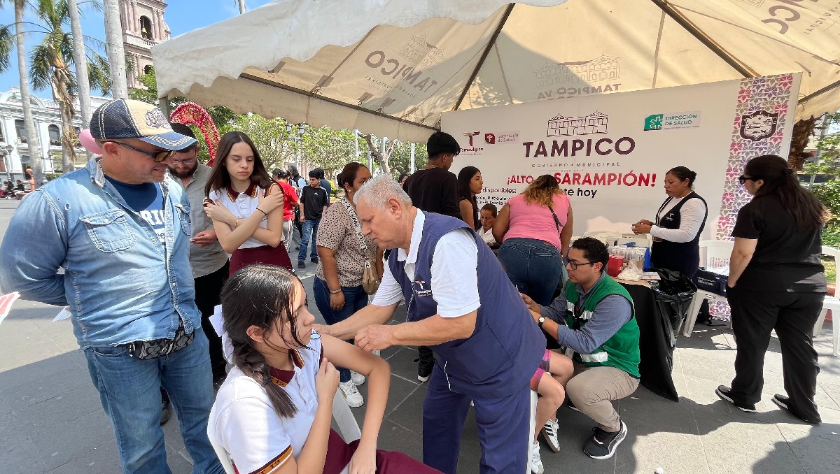 “Hay brote de sarampión y no me quiero contagiar”: Tampico registra largas filas de vacunación