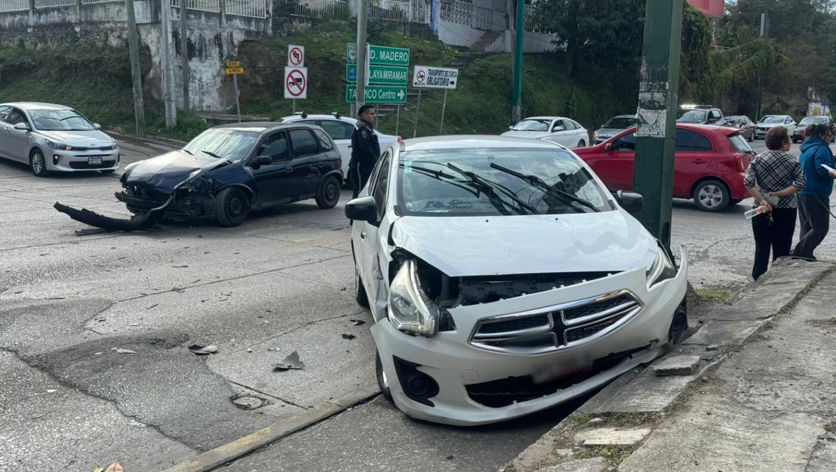 Tras el choque, una de las unidades terminó proyectada contra la banqueta. -