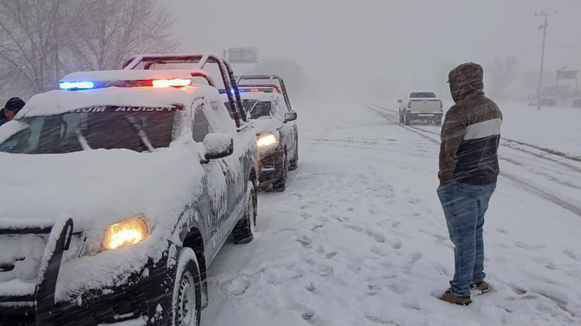 Chihuahua reporta nevadas en 24 municipios y cierre de 18 tramos carreteros. Autoridades habilitaron 200 refugios para 42 mil personas y piden extremar precauciones. -