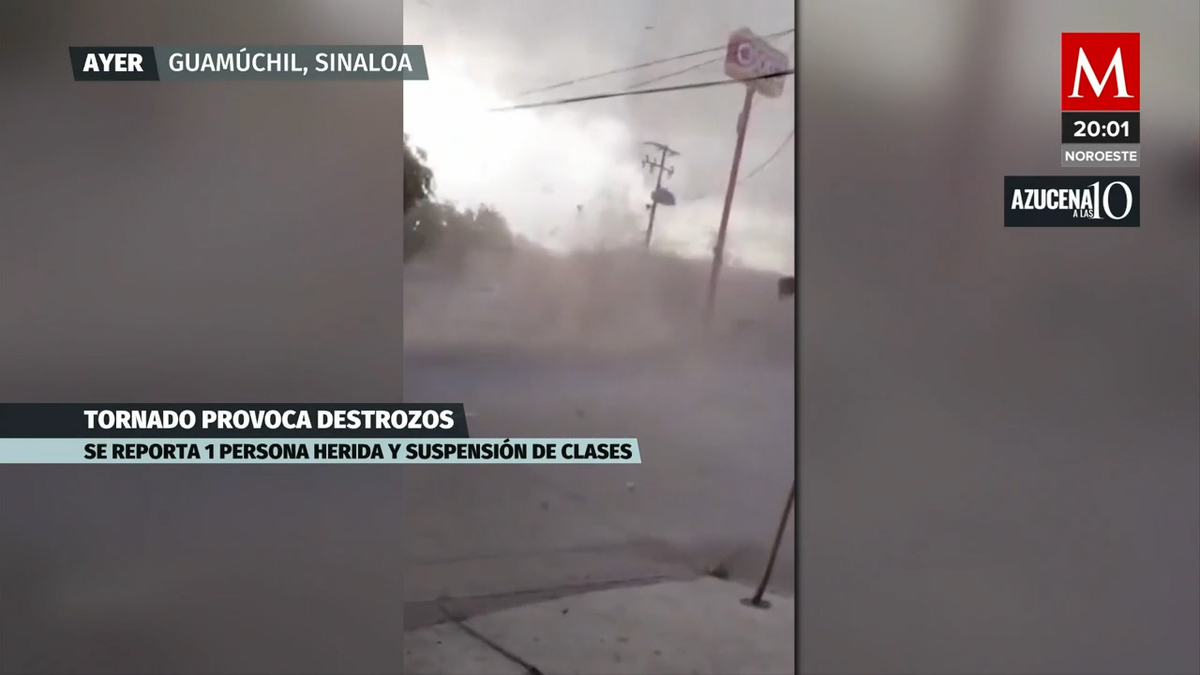 Un enorme tornado deja daños y suspenden clases en Guamúchil