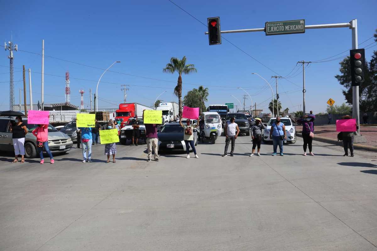 Más de 100 personas bloquearon la carretera Gómez Palacio - Jiménez para pedir apoyo al Ayuntamiento tras perder su mercancía en la tromba registrada este viernes.
