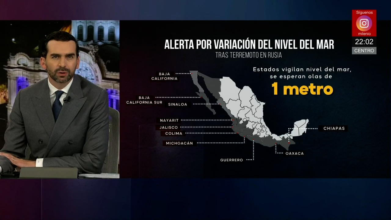 El Centro de Alerta de Tsunamis de la Marina emitió una alerta para toda la costa del Pacífico mexicano tras un sismo de magnitud 8.2 en Rusia. Se monitorean posibles variaciones en el nivel del mar. -