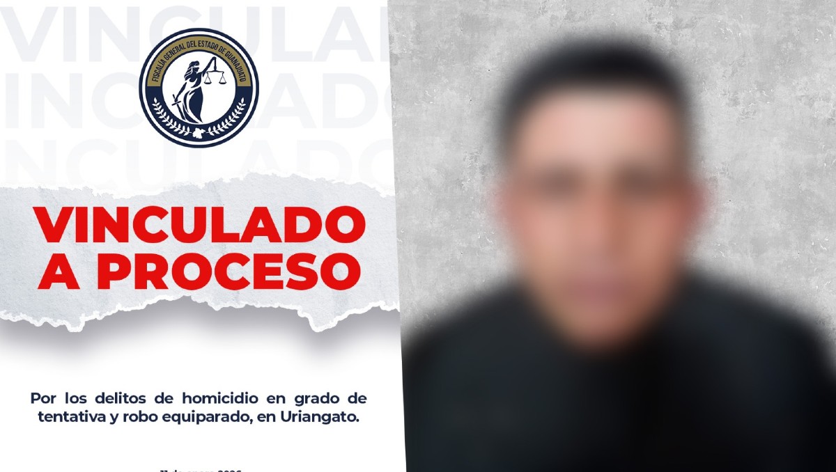 Uno de los dos sujetos detenidos tras un ataque armado en un tianguis de ropa en Uriangato fue vinculado a proceso por homicidio calificado en grado de tentativa y robo; el segundo permanece hospitalizado bajo custodia. -