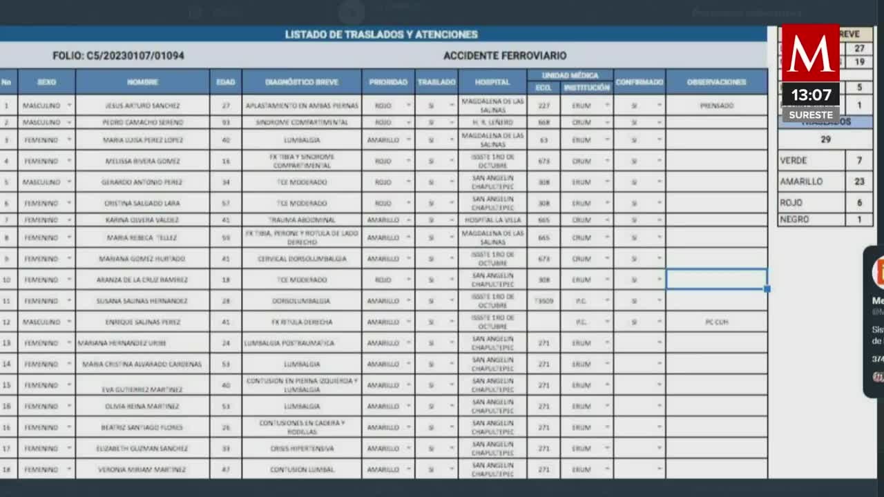 Comparten lista completa de lesionados; hay al menos 23 personas