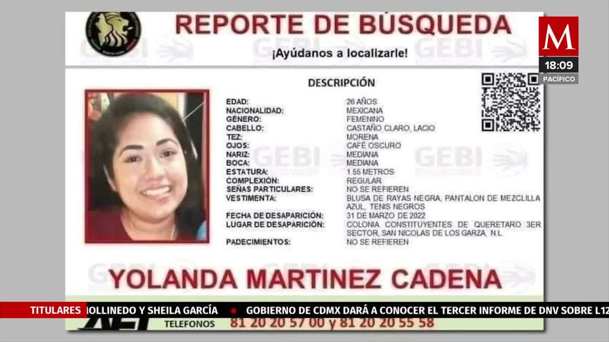 La Fiscalía General de Justicia de Nuevo León confirmó que el cuerpo localizado en el municipio de Juárez es el de Yolanda Martínez, joven desaparecida desde el pasado 31 de marzo en el municipio de San Nicolás. -