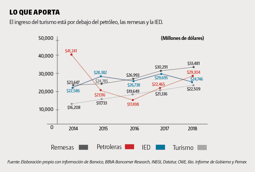 De los poco más de 39 millones de turistas que visitaron el país en 2017, 42.7% hizo su internación desde el aeródromo de Cancún, en tanto que 25.1% la hizo desde el aeropuerto Benito Juárez en la capital mexicana. La posible expansión de operaciones en Texcoco podría haber ampliado la oportunidad de recibir a más viajeros interesados en conocer el centro de México.