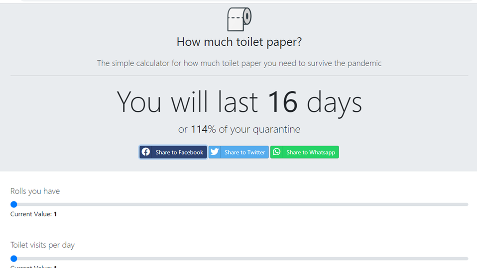 La herramienta digital fue creada hace algunos meses y realiza un cálculo aproximado a la realidad. Para saber cuántos rollos de papel higiénico necesitas para la cuarentena, sólo tienes que ingresar el número de veces que vas al baño y los rollos con los que cuentas en estos momentos.