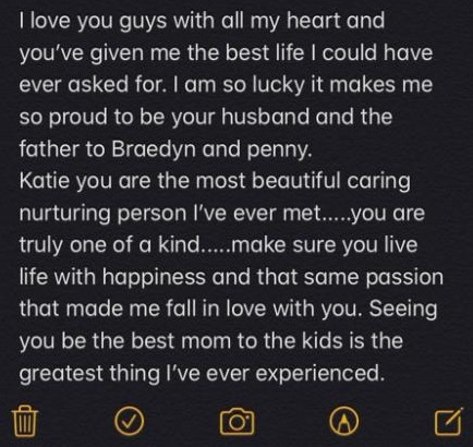 En dicho mensaje, Jonathan le expresa cuanto la ama a ella y a sus hijos y agradeció el amor que Katie le brindo el tiempo que estuvieron juntos.