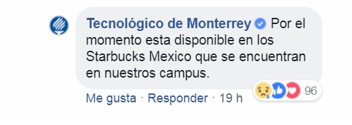 Por el momento se venderá sólo en los ocho Starbucks que están dentro de los campus del Tec, entre ellos CCM, Santa Fe, Guadalajara, Puebla y Monterrey. Estará disponible a lo largo de esta semana.