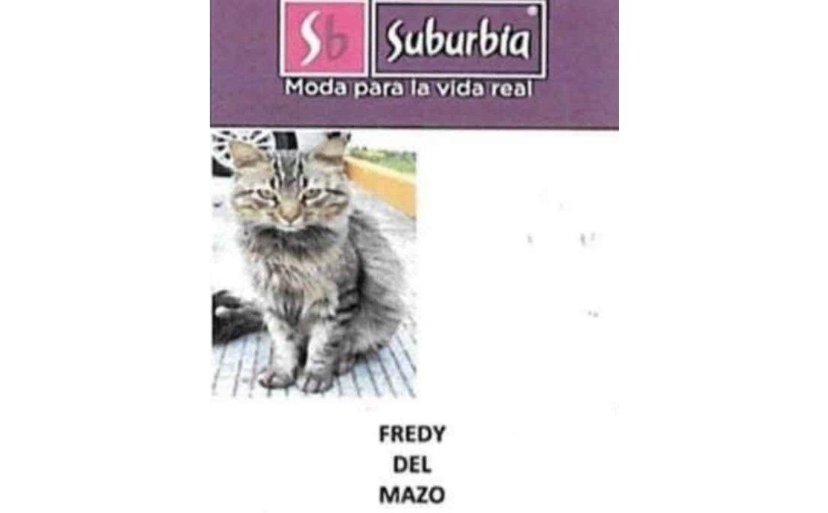 La noticia del michi ha causado revuelo entre los internautas, quienes aplauden la decisión de Suburbia al darle un hogar seguro a la mascotita, misma que fue nombrada como "Fredy Del Mazo"; en la foto se le ve un collar y su gafete de identificación.