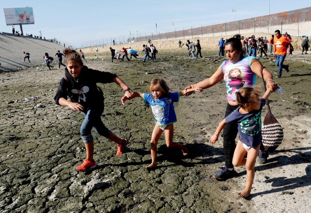 En la toma, captada el domingo 25 de octubre, se puede ver a una madre de origen hondureño, María Meza, agarrando los delgados brazos de sus dos hijas gemelas de 5 años, Cheili y Saira, mientras huyen frenéticamente del gas lacrimógeno arrojado por las autoridades estadunidenses.