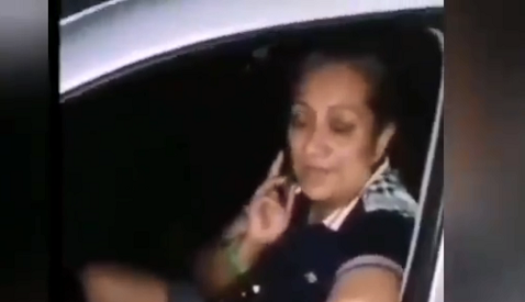 En un video que circula en redes sociales se observa que la mujer está a bordo de una camioneta gris y mientras habla por teléfono, insulta y amenaza de muerte al oficial que la detuvo.