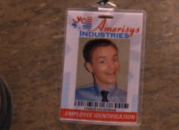 La decisión de no tener apellido se reforzó y fue aún más clara cuando en la escena del último capítulo, en la ceremonia de graduación de Malcolm y Reese, Francis deja caer su identificación de trabajo, en ésta se logra leer: Francis Nolastname.