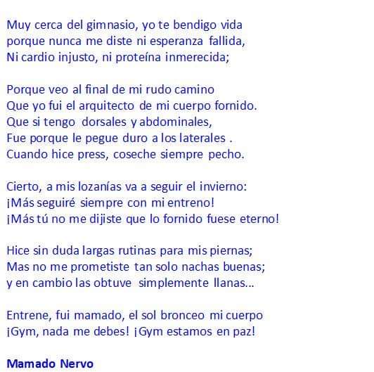 Los más creativos se dieron la licencia de crear todo un poema que "Mamado" Nervo habría escrito a propósito de sus rutinas de ejercicio: