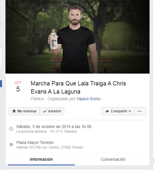 Bajo el lema de "La unión hace la fuerza, si París Hilton vino al mercado Juárez todo puede suceder" usuarios de redes sociales convocaron a una marcha en la Plaza Mayor de Torreón para que el actor Chris Evans visite La Laguna.