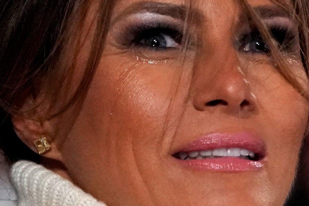 Las cámaras captaron a Melania conmoviéndose hasta las lágrimas frente al árbol lleno de luces.