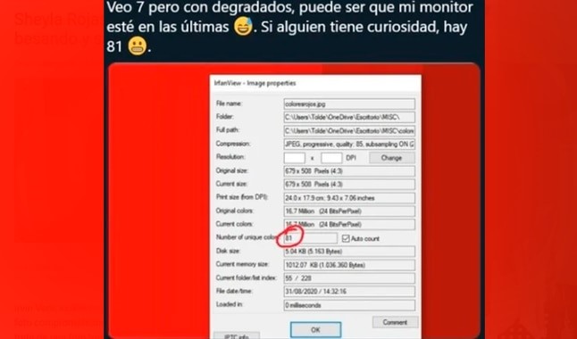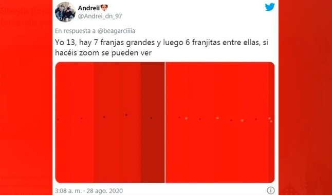 Fue la usuaria @beagarciiiia quien decidió retar a todos los internautas, colocando la extraña imagen de colores en Twitter, alcanzando un gran número de respuestas desesperadas e ingeniosas de personas que vieron desde 3 hasta 50 colores diferentes.