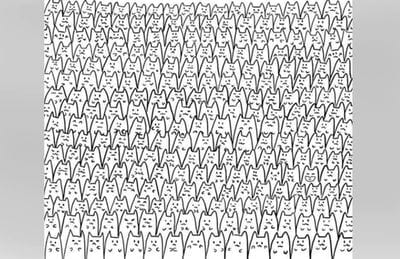 El reto puede no ser tan difícil si llevas las gafas puestas. Si no, aquí te dejamos una pista: todos los gatitos tienen caras diferentes, pero ninguno tiene barba, si te confundiste, vuelve a mirar. Quizá quieras prestar atención a la parte inferior derecha (mirando de frente) de la imagen. Ahí encontrarás una boca que poco tiene que ver con la de un felino.