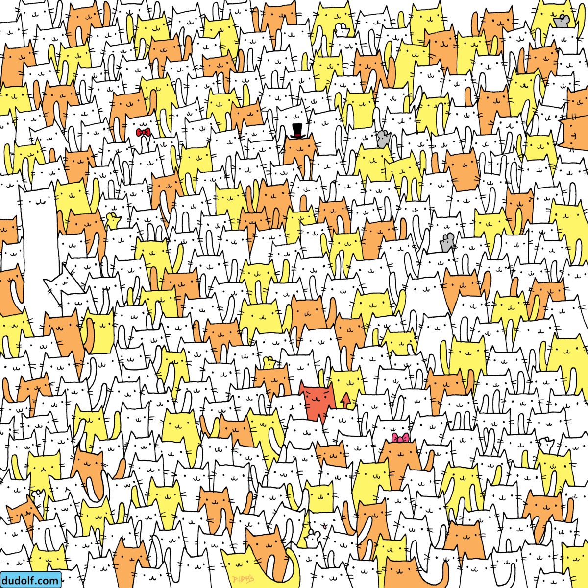 En esta ocasión, tenemos una nueva ilustración del húngaro Dudolf, quien publicó una imagen donde nos reta a encontrar un conejo escondido entre un montón de gatos. ¿Lo puedes encontrar? Te invitamos a que lo logres en menos de 20 segundos. Sigue bajando para ver la imagen completa.