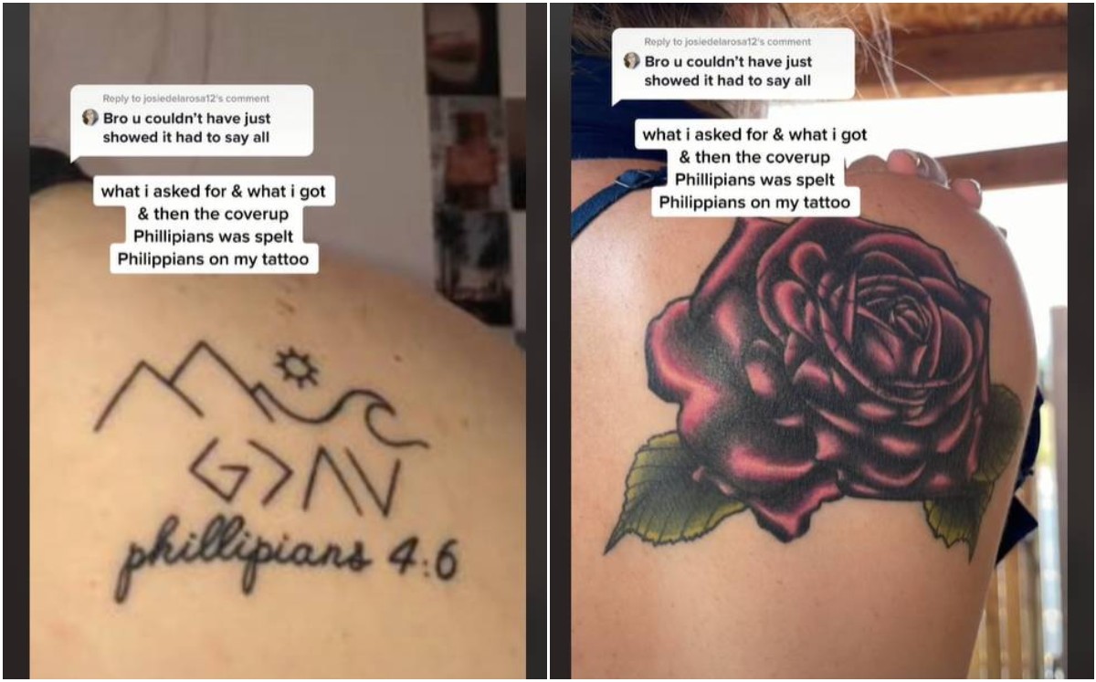 En un inicio evaluó remover el resultado con láser, pero al final aceptó la propuesta del cover-up, así fue como el versículo de la Biblia se convirtió en una flor enorme. "Según él, la rosa era el único diseño que quedaba bien para cubrir el anterior tatuaje", compartió.